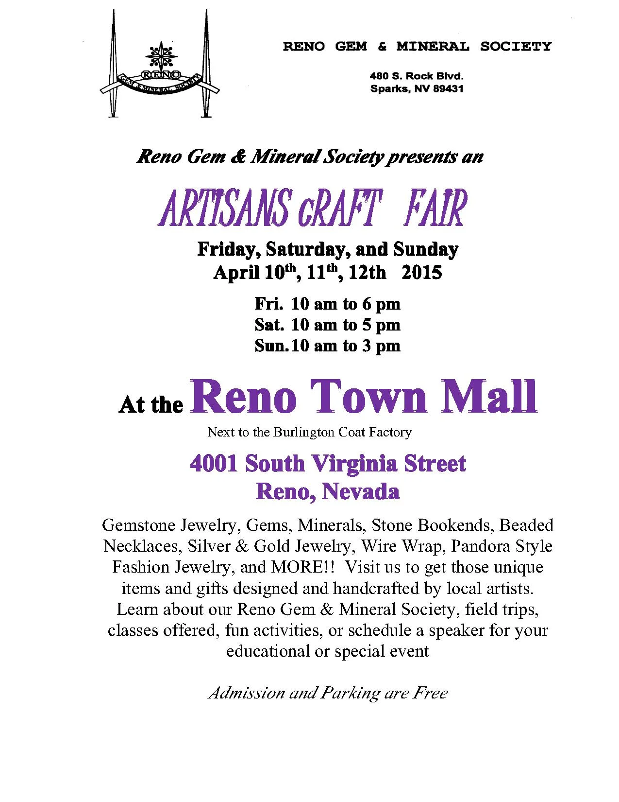 Reno Gem & Mineral Society Artisans Craft Fair